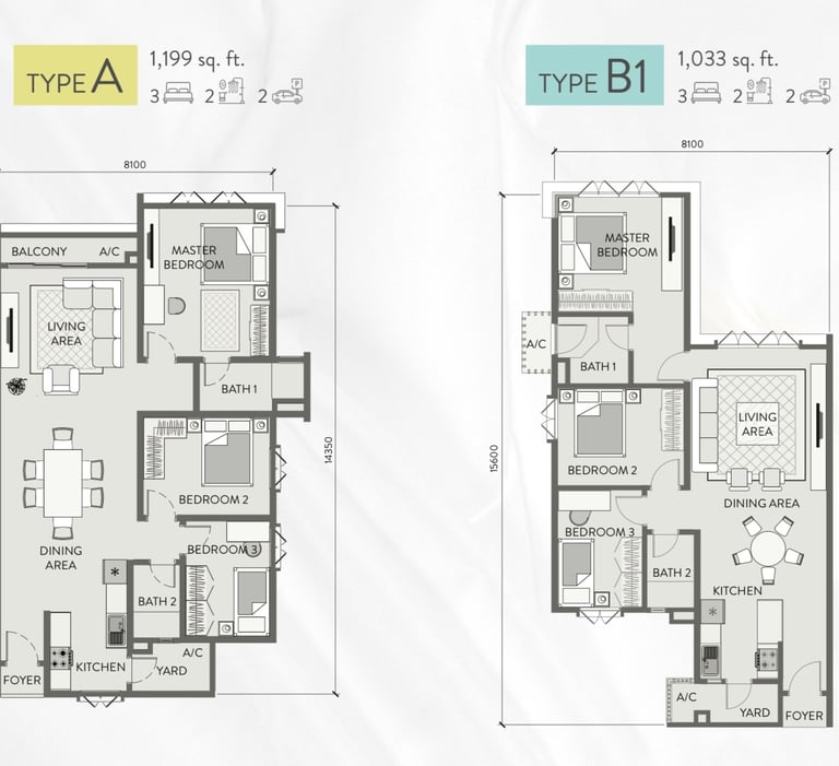 🌟 4 type of floor design 1,199SQFT, 1,033SQFT, 902SQFT, 802SQFT