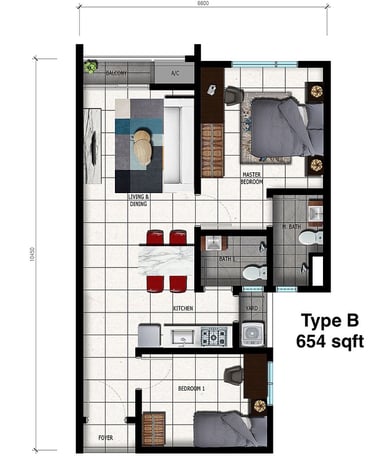 🌟 3 Room (type A) / 2 Room (Type B&C) & 2 Bath (all type)
